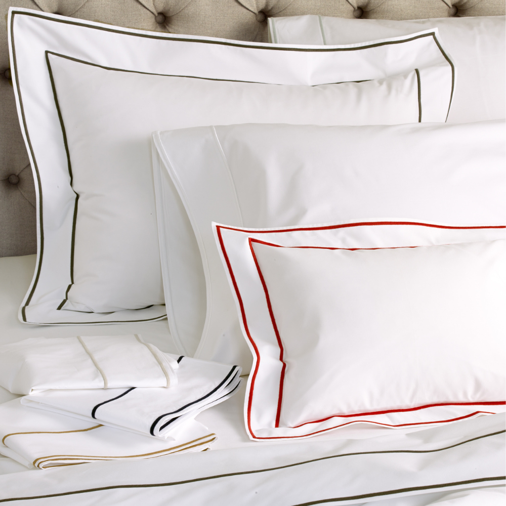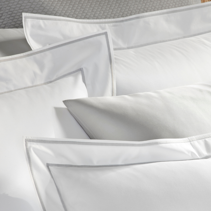 Laissez-vous séduire par la douceur luxueuse de la percale de coton égyptien 500 fils/cm² avec Ansonia. Ornée de deux élégantes rangées de surpiqûres satinées, cette parure de lit apporte une touche de sophistication et de raffinement à votre chambre. Son tissu blanc sur mesure et ses touches sobres créent une allure naturellement élégante, vous assurant une sensation de luxe à chaque instant.